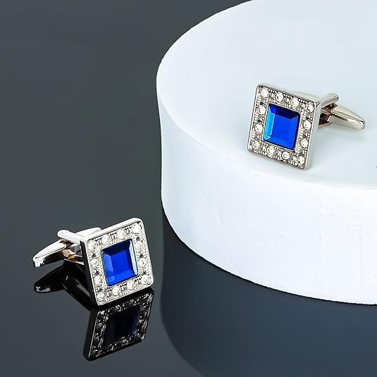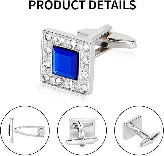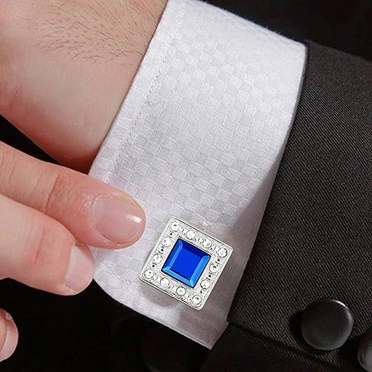 • Exquisite and Elegant Appearance: These sliver black men’s cufflinks and studs for men have a smooth polished finish set with sparkling rhinestones that catch the light and add a touch of sparkle to your look. The blue rhinestone makes them visually appealing. Show off a man’s dazzling style