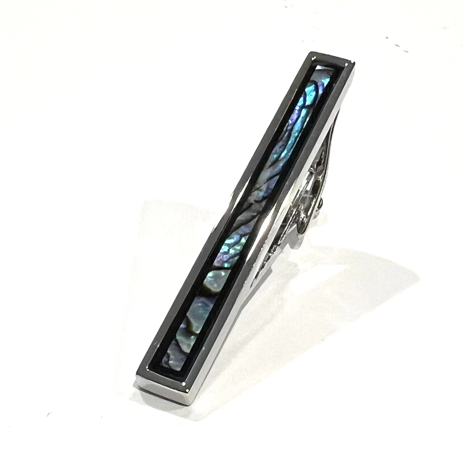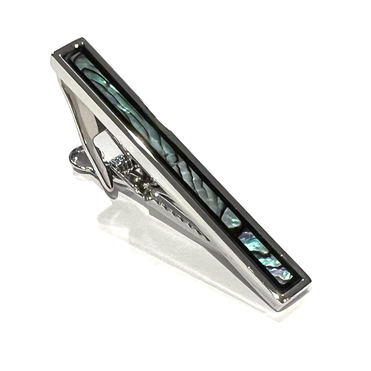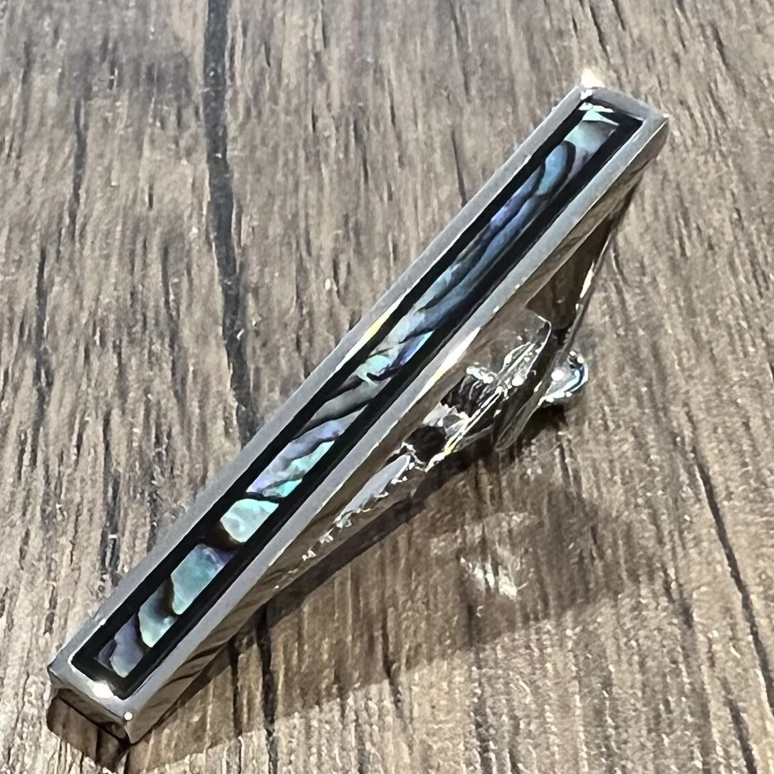 Abalone Onyx Border Tie Clip Men Birthday Wedding Gift Tie Bar With Box