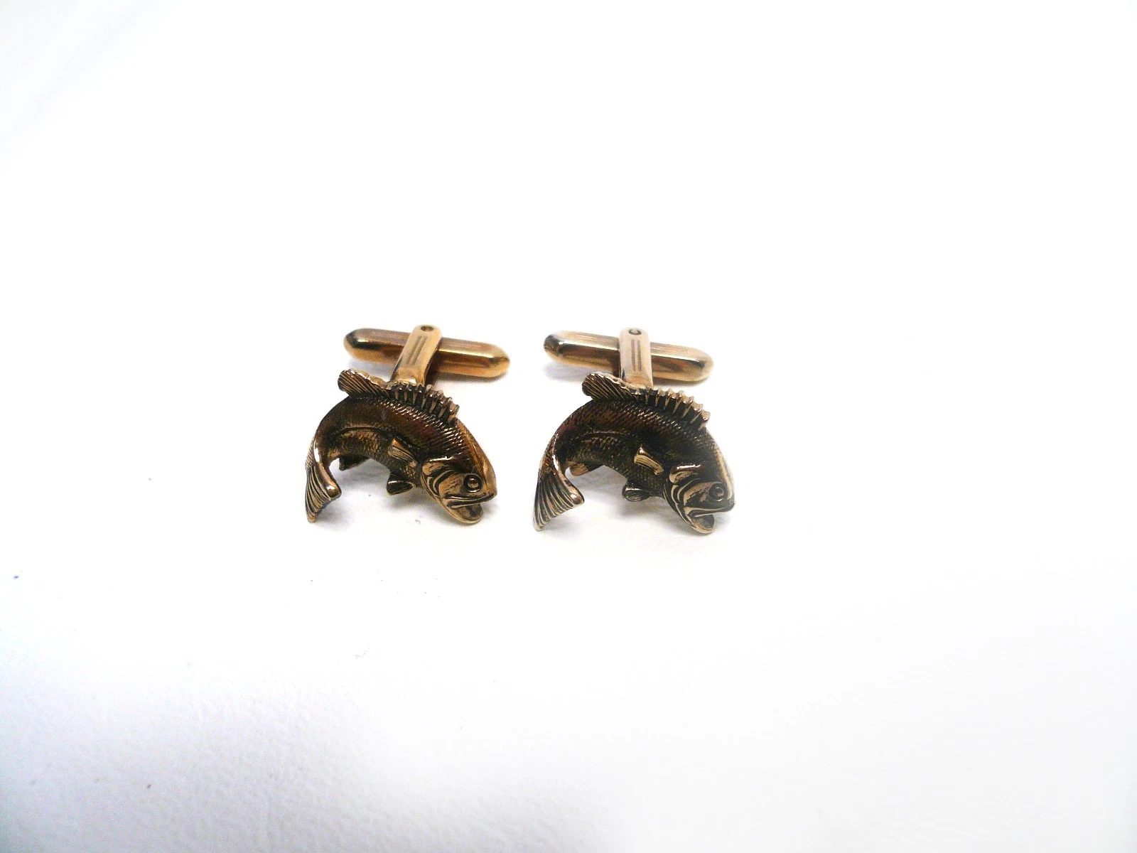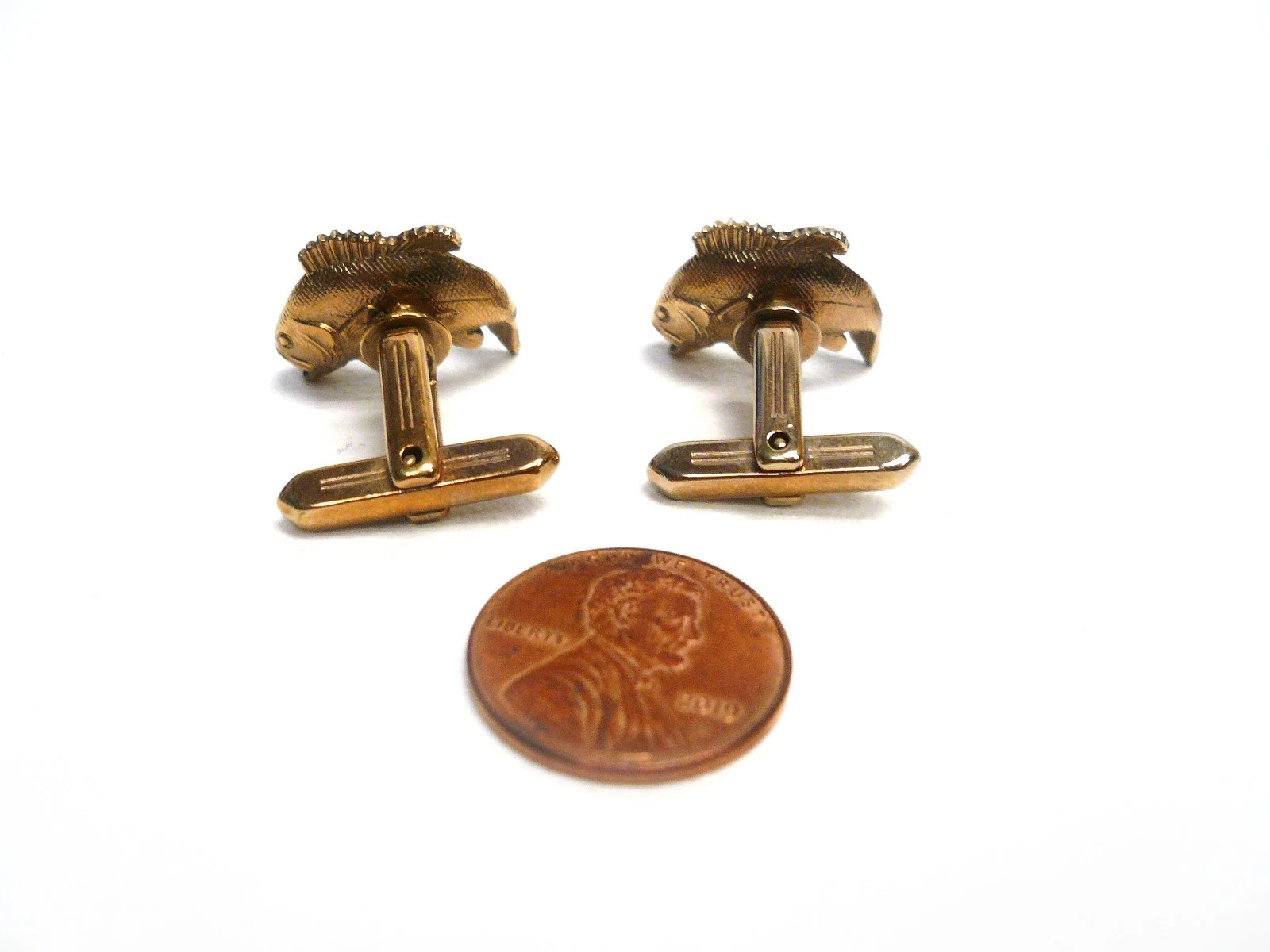 Vintage Hickok Gents Gold Tone Cuff Links Fish MotifVintage Hickok Gents Gold Tone Cuff Links Fish Motif